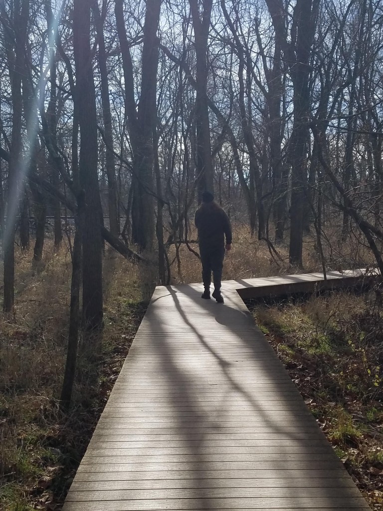 The day after Christmas, it’s sunny and cold in Springfield. The nature trails are surprisingly quiet, the parking lot only about half filled in the slanting wintery light.