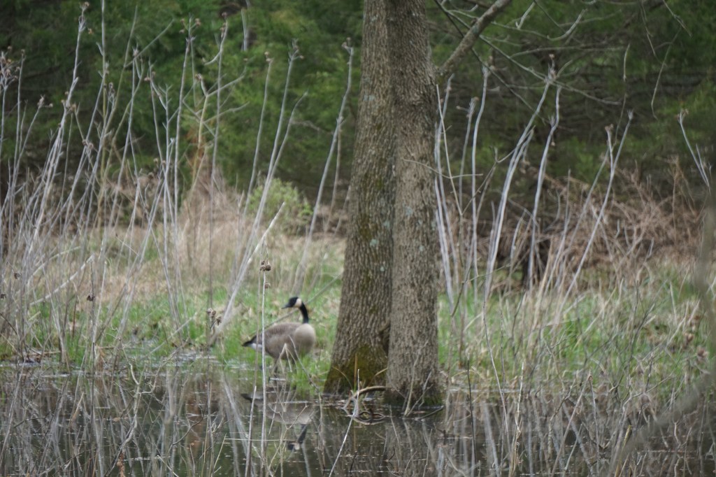 Cross country connector trail morphs into a wetlands safari. It feels like immersion in old adventure film, as frogs murmur in constant vibrato from the marshy edges of the trail.