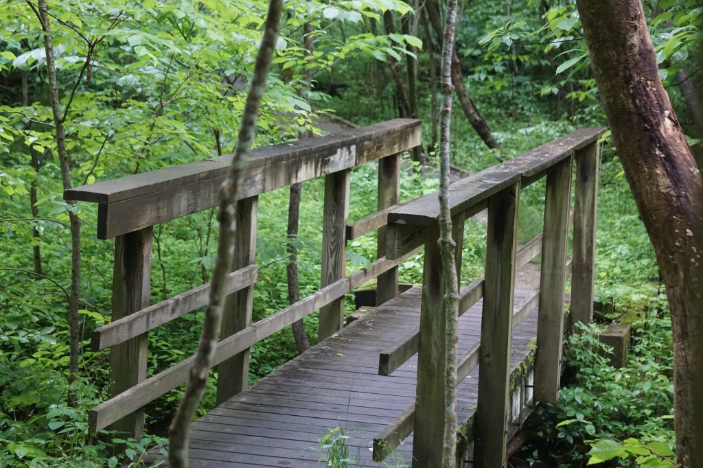 High on the ridge and deep in the woods, I can’t even make out the muffled roar of traffic on the highway below.