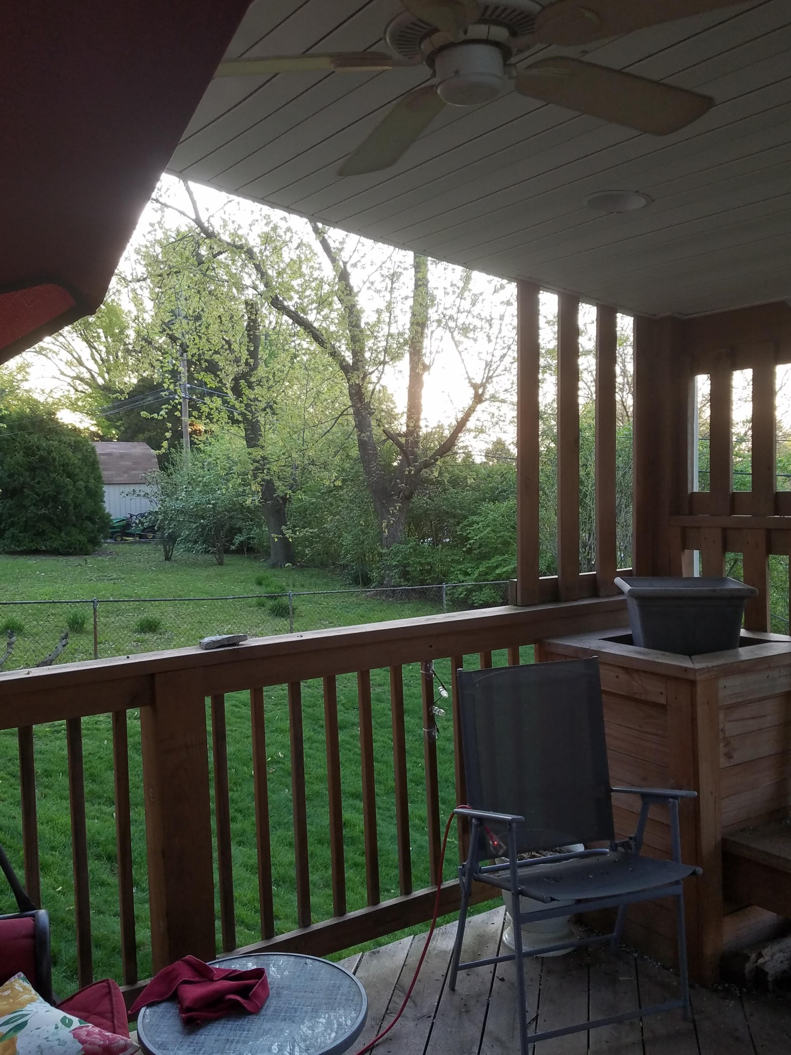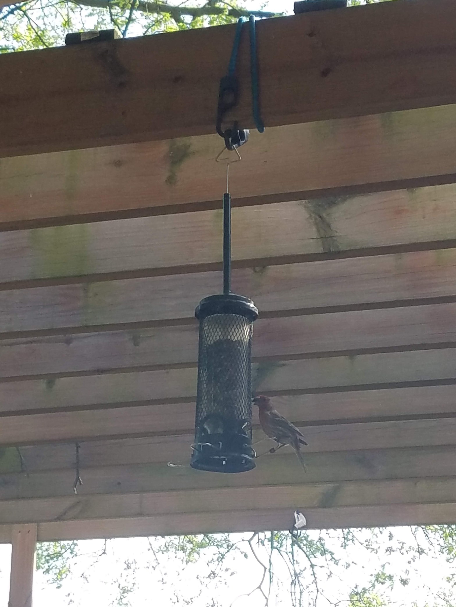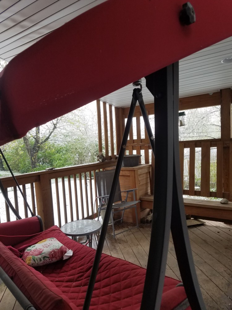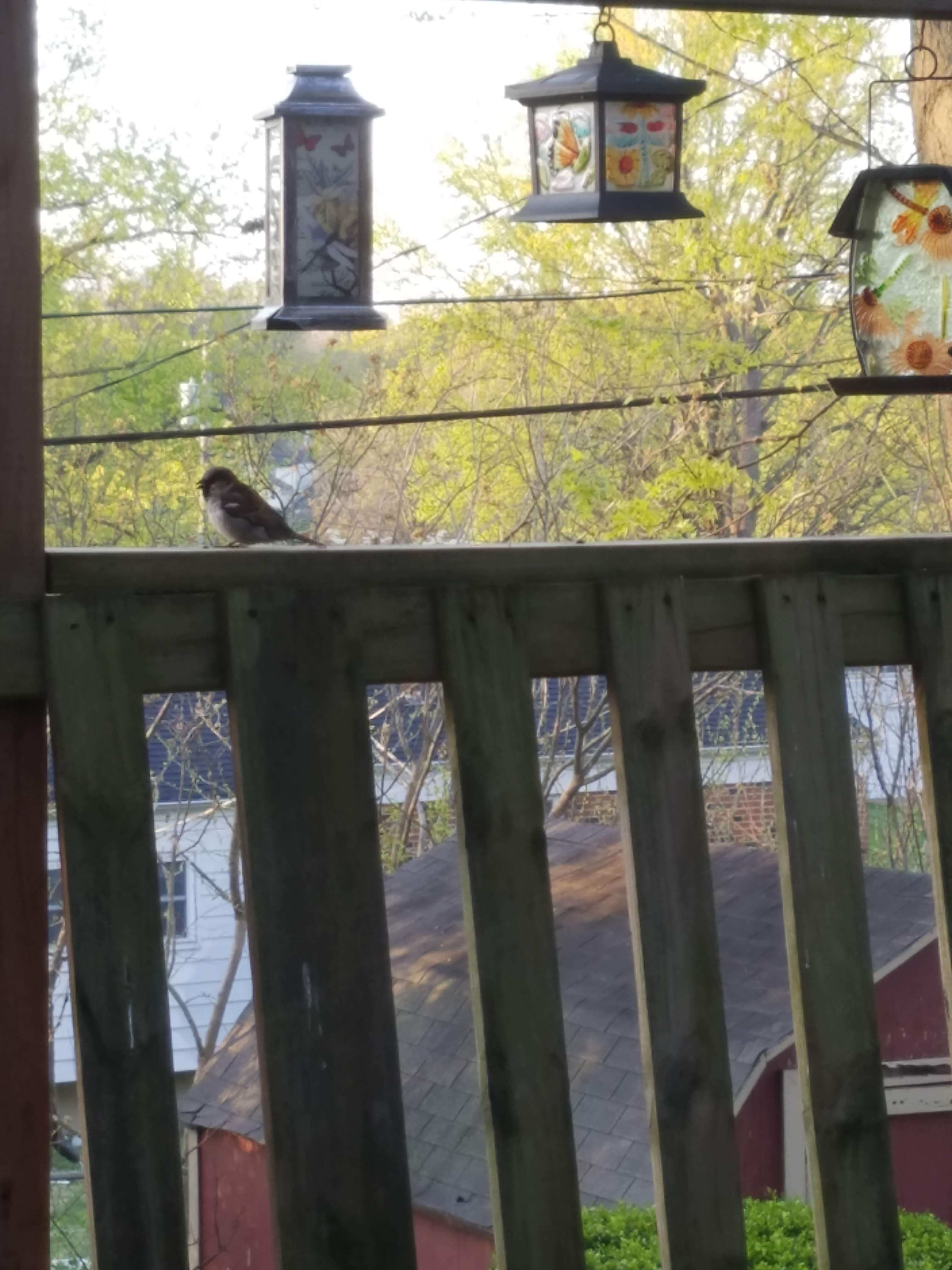 Deck cleaning and flower planting on a beautiful May Day Saturday. The birds were offended by my presence most of the morning, especially when I washed away their piles of seed on the floor of the deck. They fussed and chattered from the trees, but eventually decided to coexist when I retreated to the swing to read.
