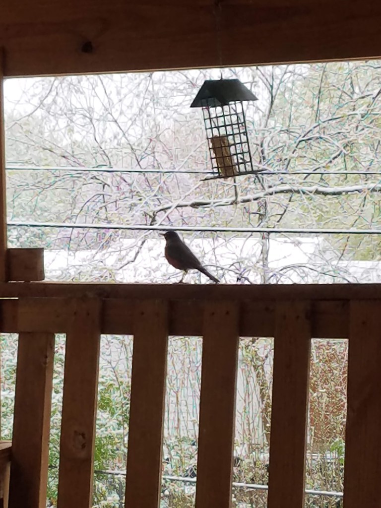 It’s still warm and spring like now, in the sunny afternoon. The hovering threat of winter temperatures and possible snow in two days time, has not yet seemed to reach my backyard wildlife.