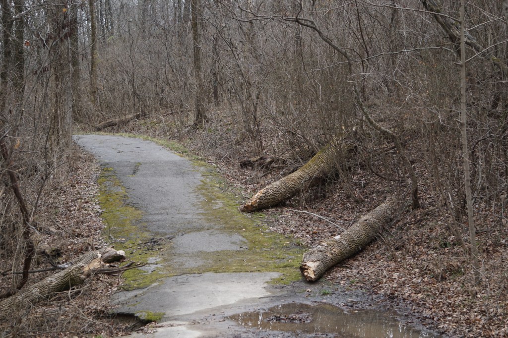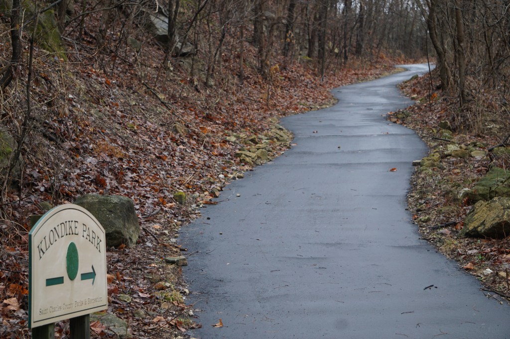 At the base of the Katy Trail access lane, the trail is damp and dense and soft. It certainly doesn’t look fun to ride on, but I don’t see flooding from here.
