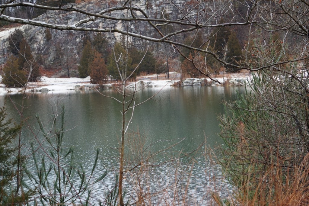 As it turns out, it’s pretty pleasant. The bluffs block the worst of the wind, even as it ripples the lake. My gloves don’t stay off for long when I stop to take pictures or write, but I’m comfortable enough with them on.