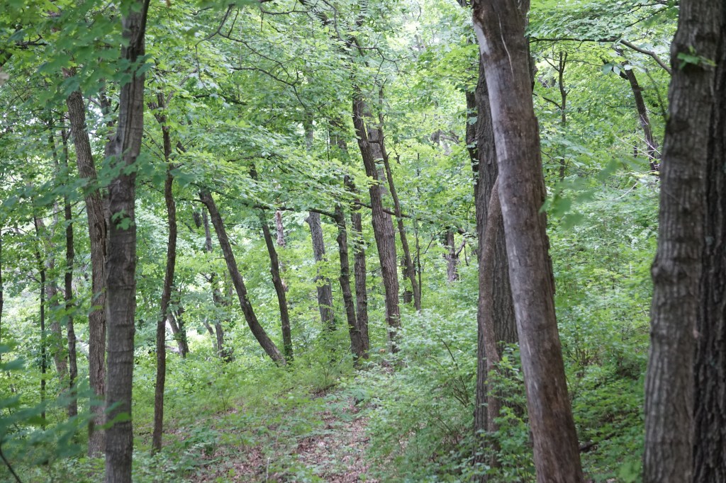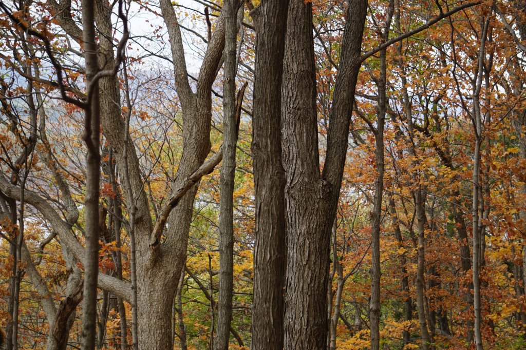 High on the ridge and deep in the woods, I can’t even make out the muffled roar of traffic on the highway below.