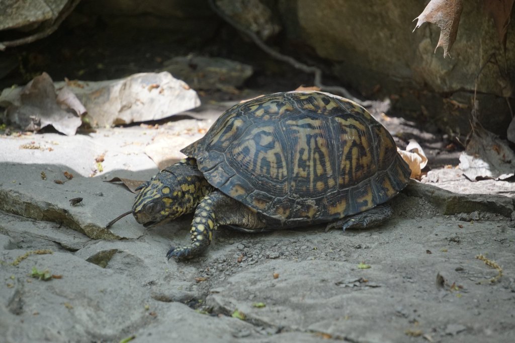 A sunning turtle and a tired hawk were the only wildlife I could capture, although the woods were full of darting and calling birds. My Merlin app, set to identify birds by sound, captured at least 15 different species. We probably actually saw a little more than half of them.