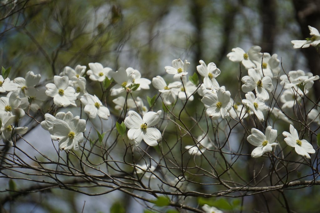 Beautiful, sunny, jacket cool afternoon. We climbed up Dogwood trail to the overlook, then down along Hickory to the Twin Shelter and Hickory South to the Lodge for lunch.
