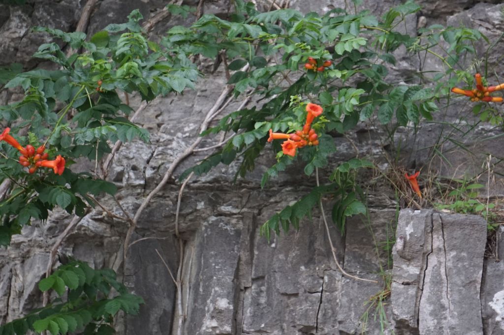 It’s bounded on both sides by trumpet flower vines before it flows into thick woodlands.