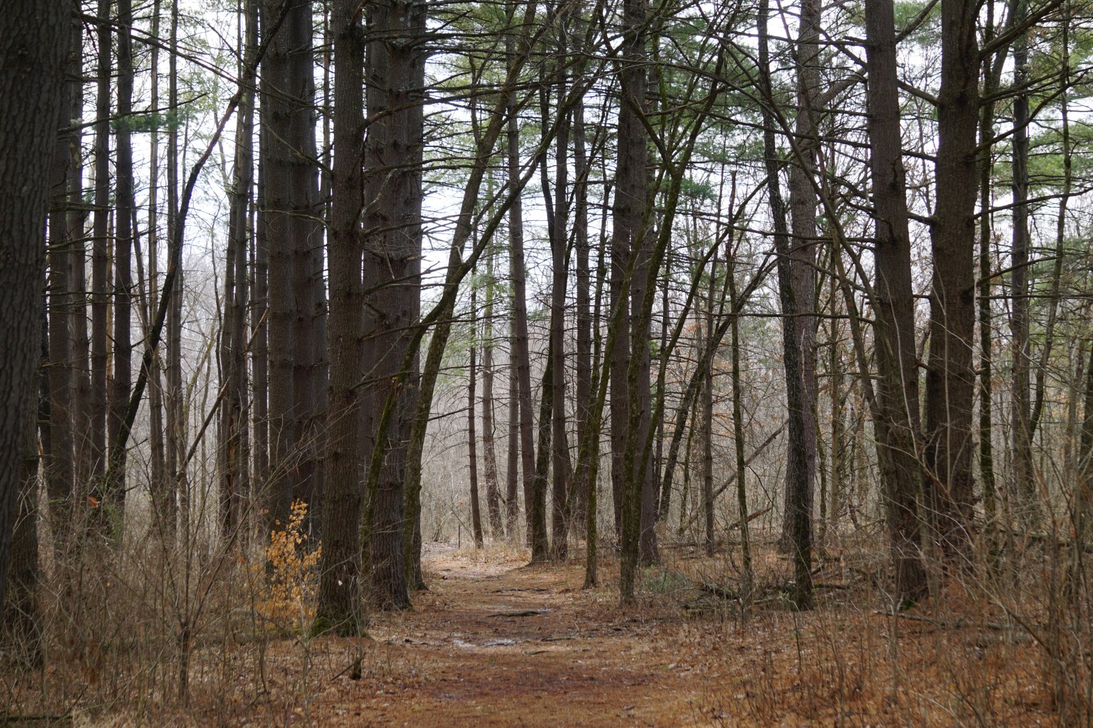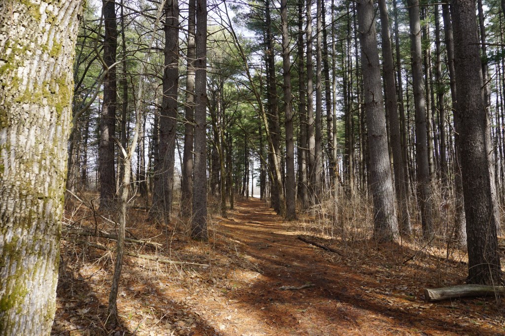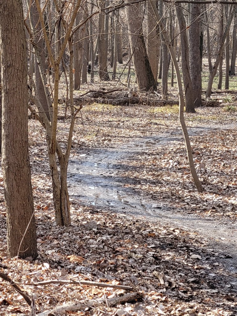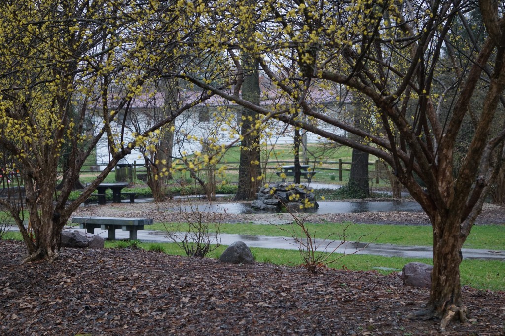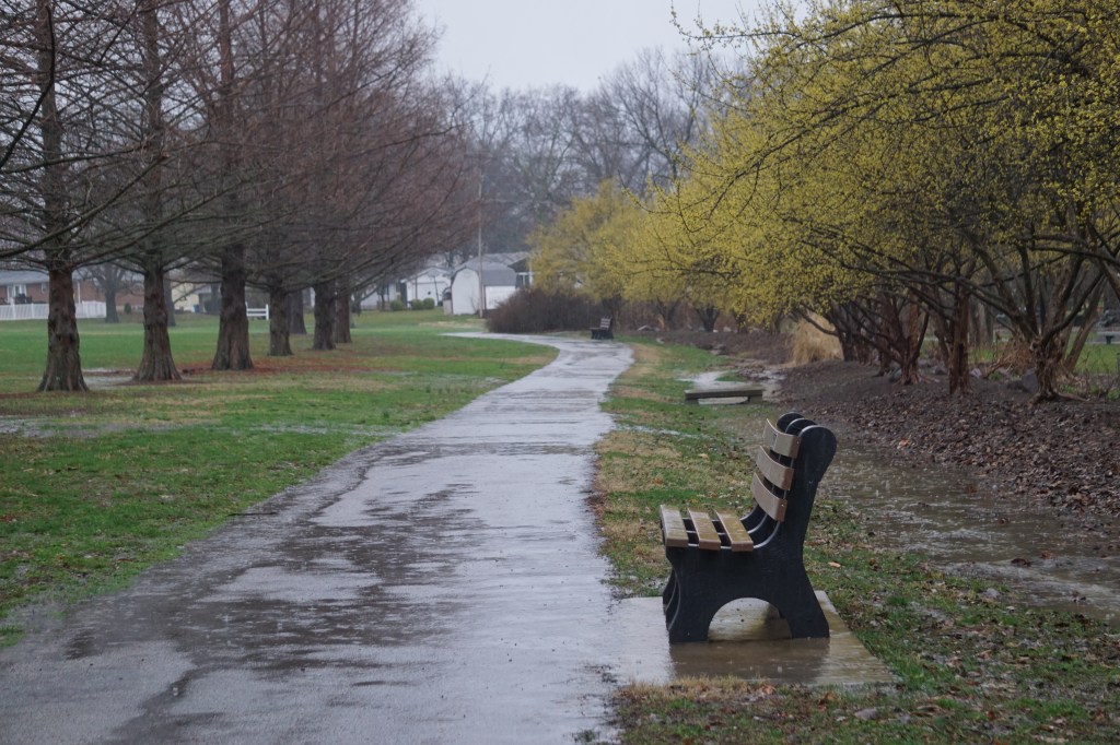 Spring break and the world is on lock down. It’s pouring rain as I pull into the empty parking lot. A semi-water proof winter coat is plenty warm enough. I tug up the hood, tuck my camera inside the front flap, and splash down the hill to the path.