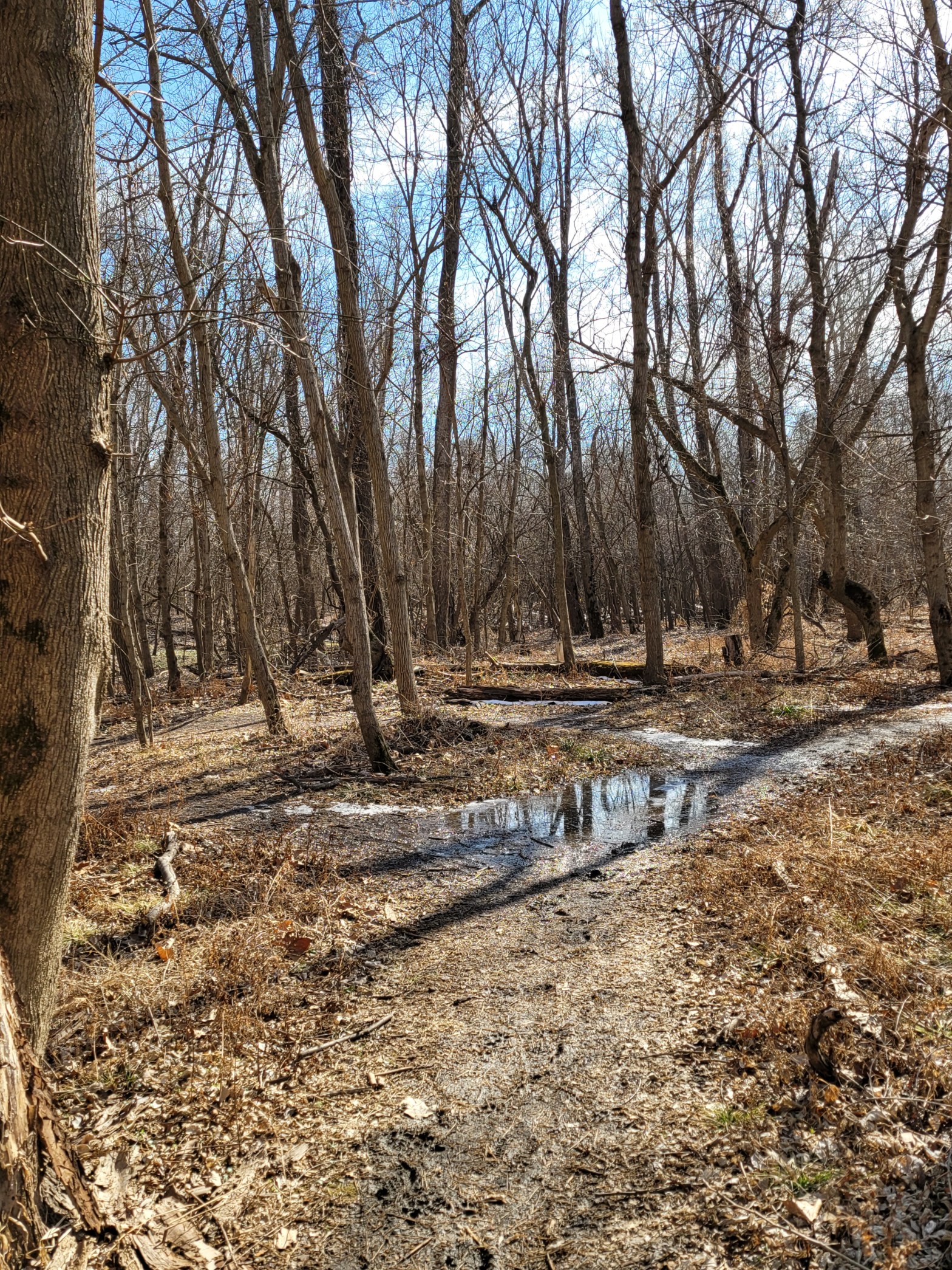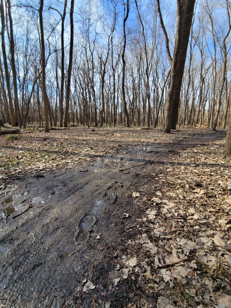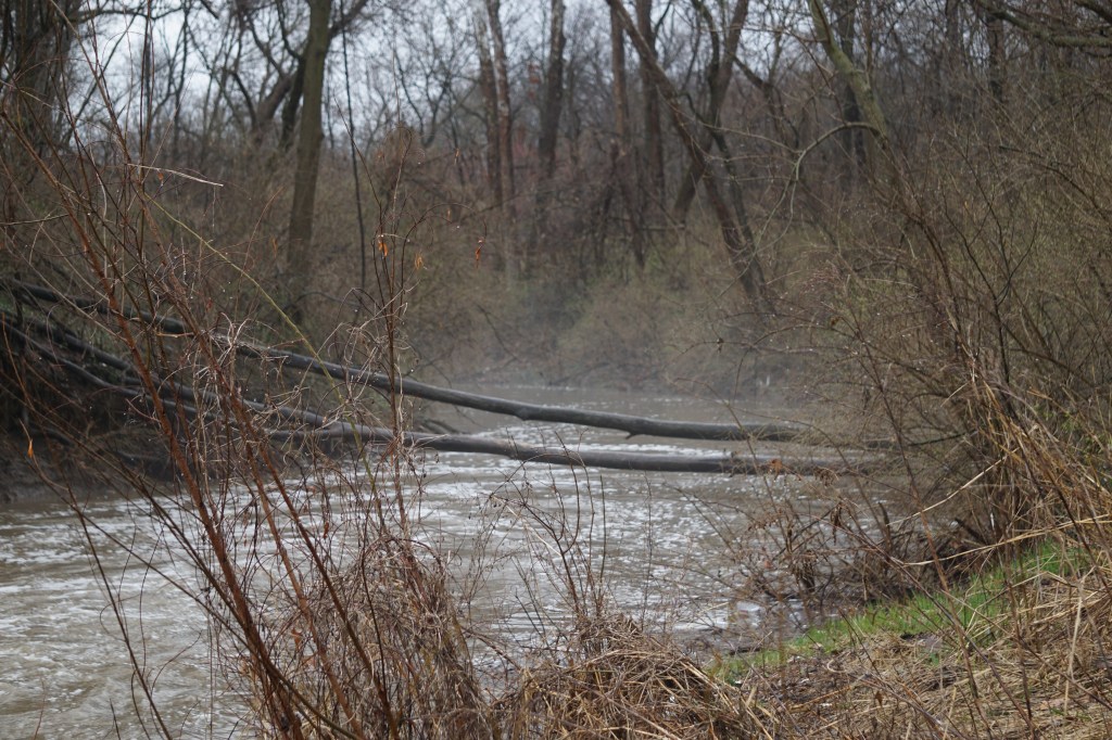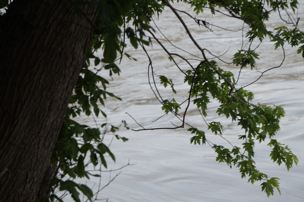 The river seems high and dark and swift under clouded skies, but it stays within its banks. Occasional splotches of thick mud on the pebbled trail seem far more than snow melt, and suggest some recent flooding.
