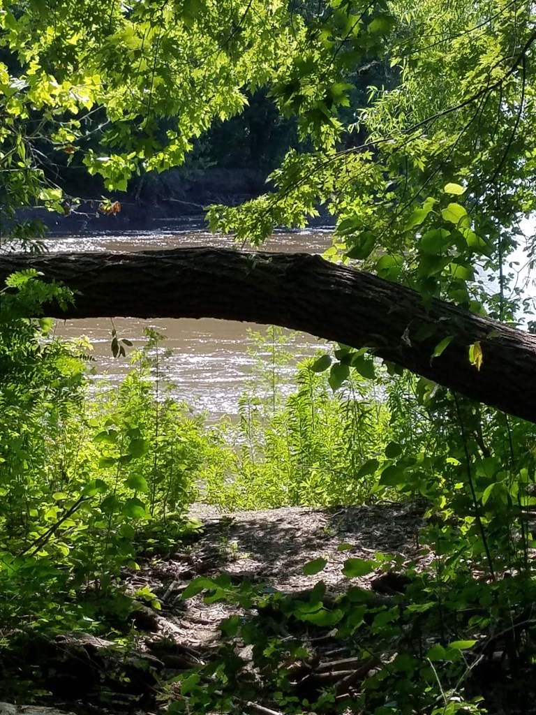 It’s clear today, though. The river flows gently well below the mud-washed elevation sign and coaxes me on through alternating stretches of woods and sun baked fields, bursting with endless wildflowers.
