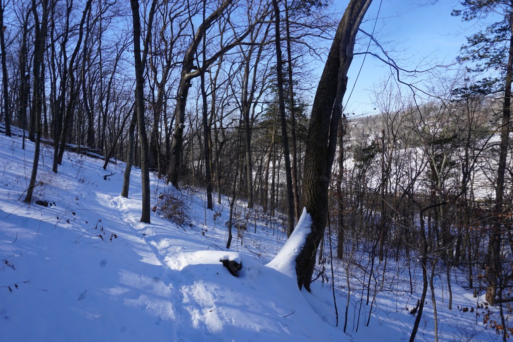The overlook trail at Klondike Park is a quick steep climb from the visitor’s center. I wasn’t too sure about getting up it today, but the snow is slushy and soft and not nearly as icy as it looks.
