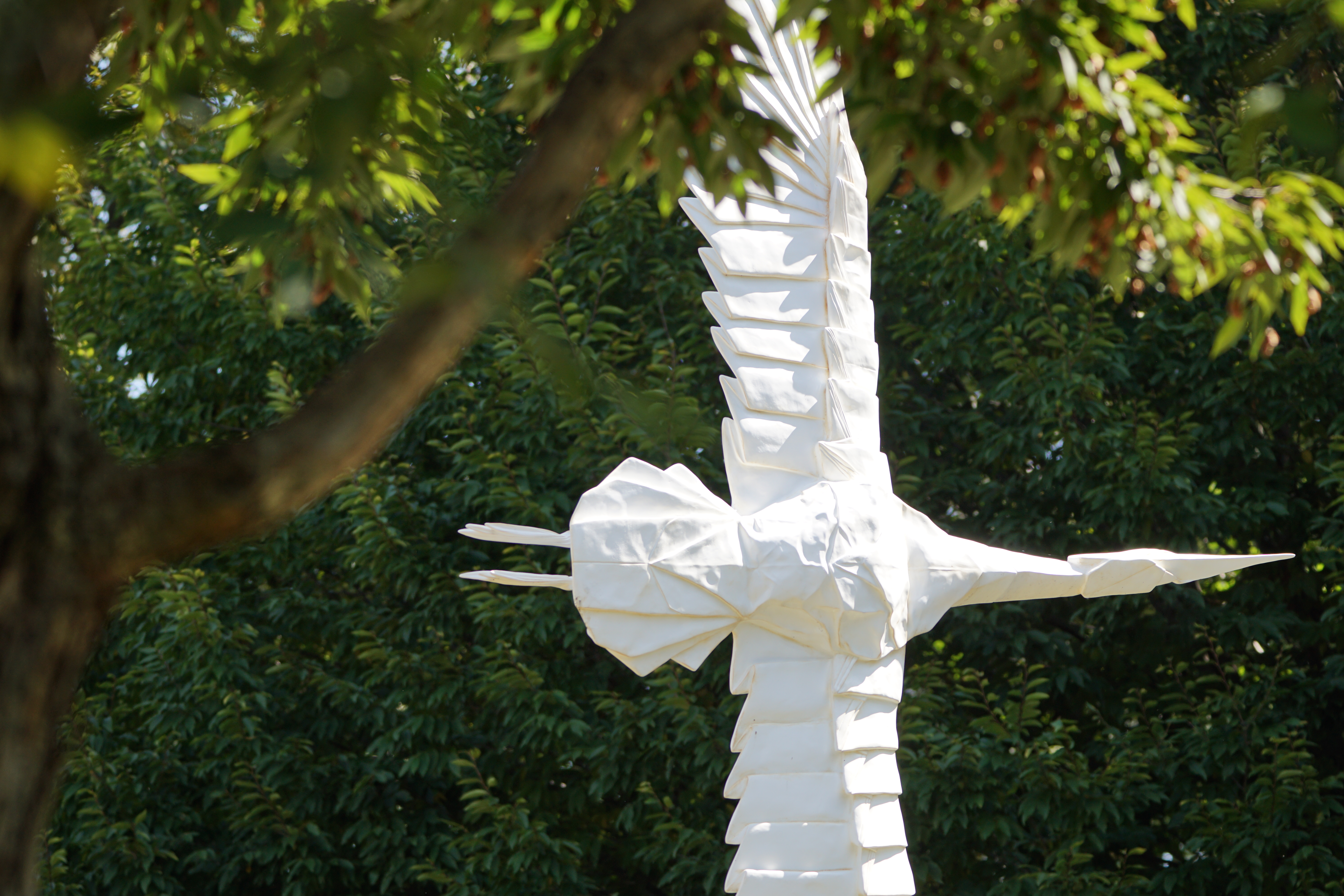 Origami in the Garden is a temporary exhibit though October 10th, of eighteen origami inspired sculptures throughout the park. They’re a little large to capture with the telephoto lens, but it was lots of fun to try. They’re huge, but amazingly detailed.