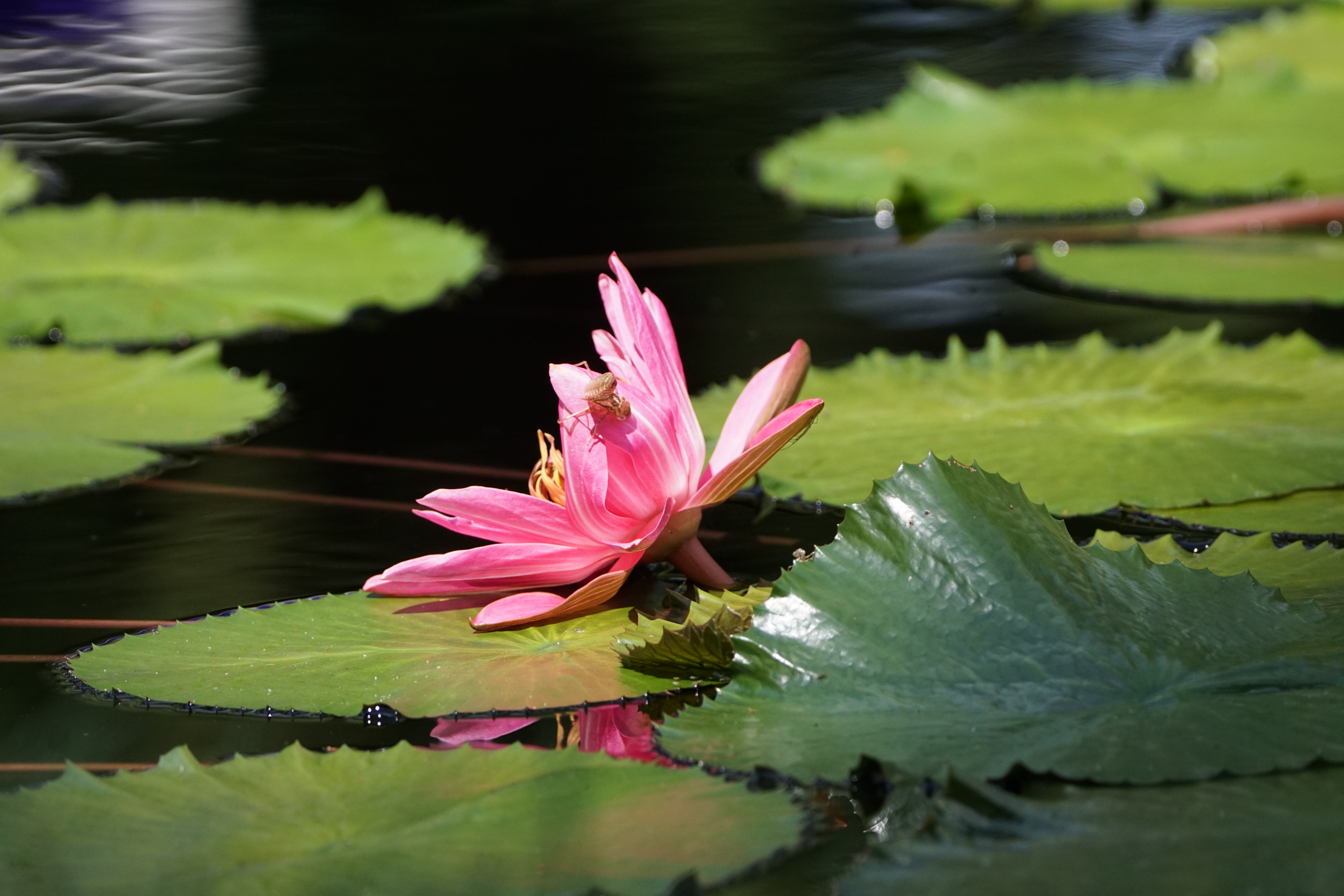 September morning, finally edging cooler; I thought the garden would be mostly deserted. I wanted to play with my new camera lens without bothering anyone, and experiment with settings and ideas from a recent class.