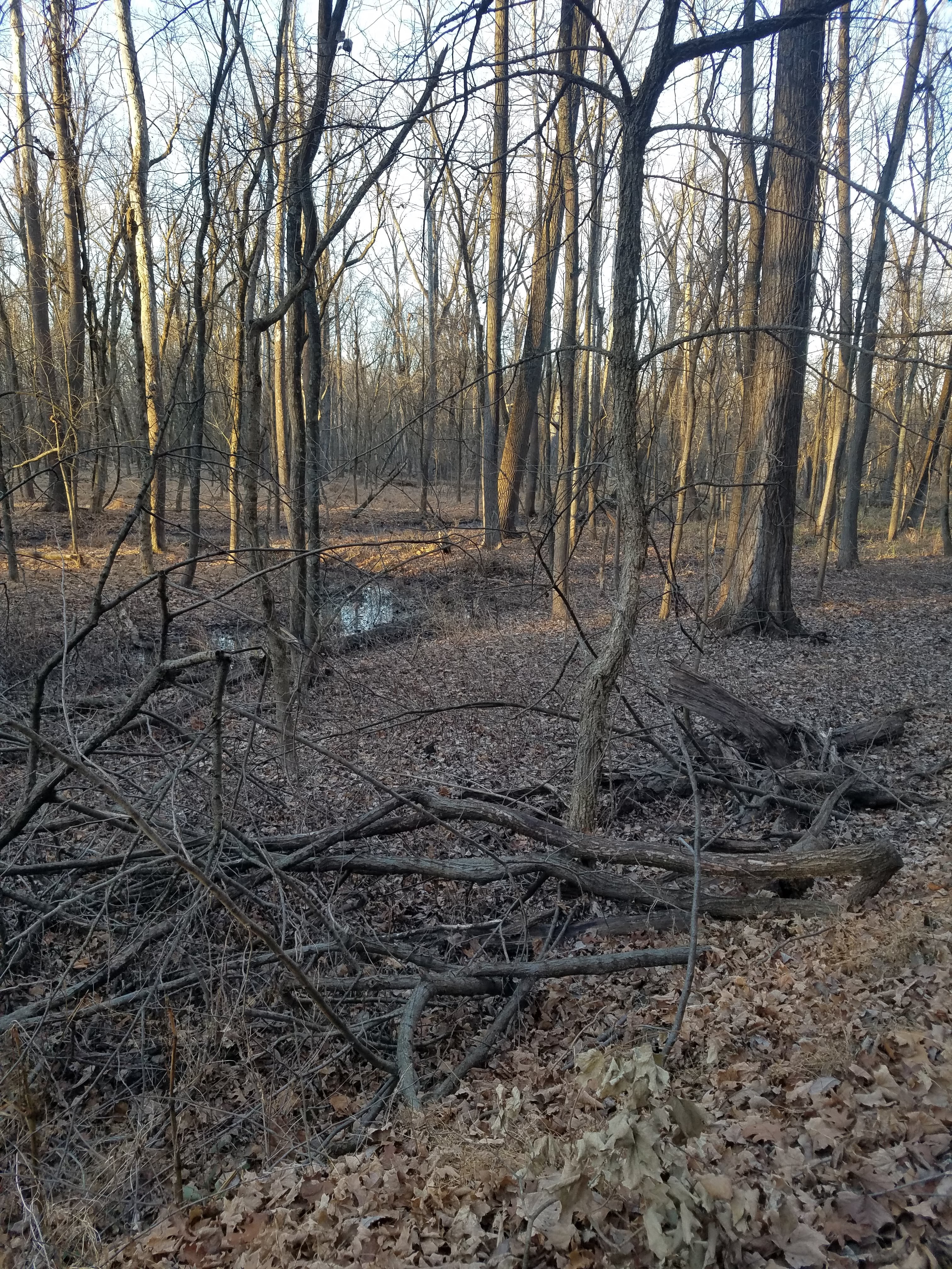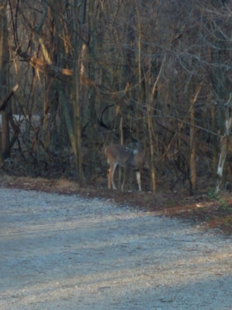 It feels completely secluded back here in the summer. Now hulking houses on the ridge peer through the skeletal trees while adolescent deer calmly ignore us all.