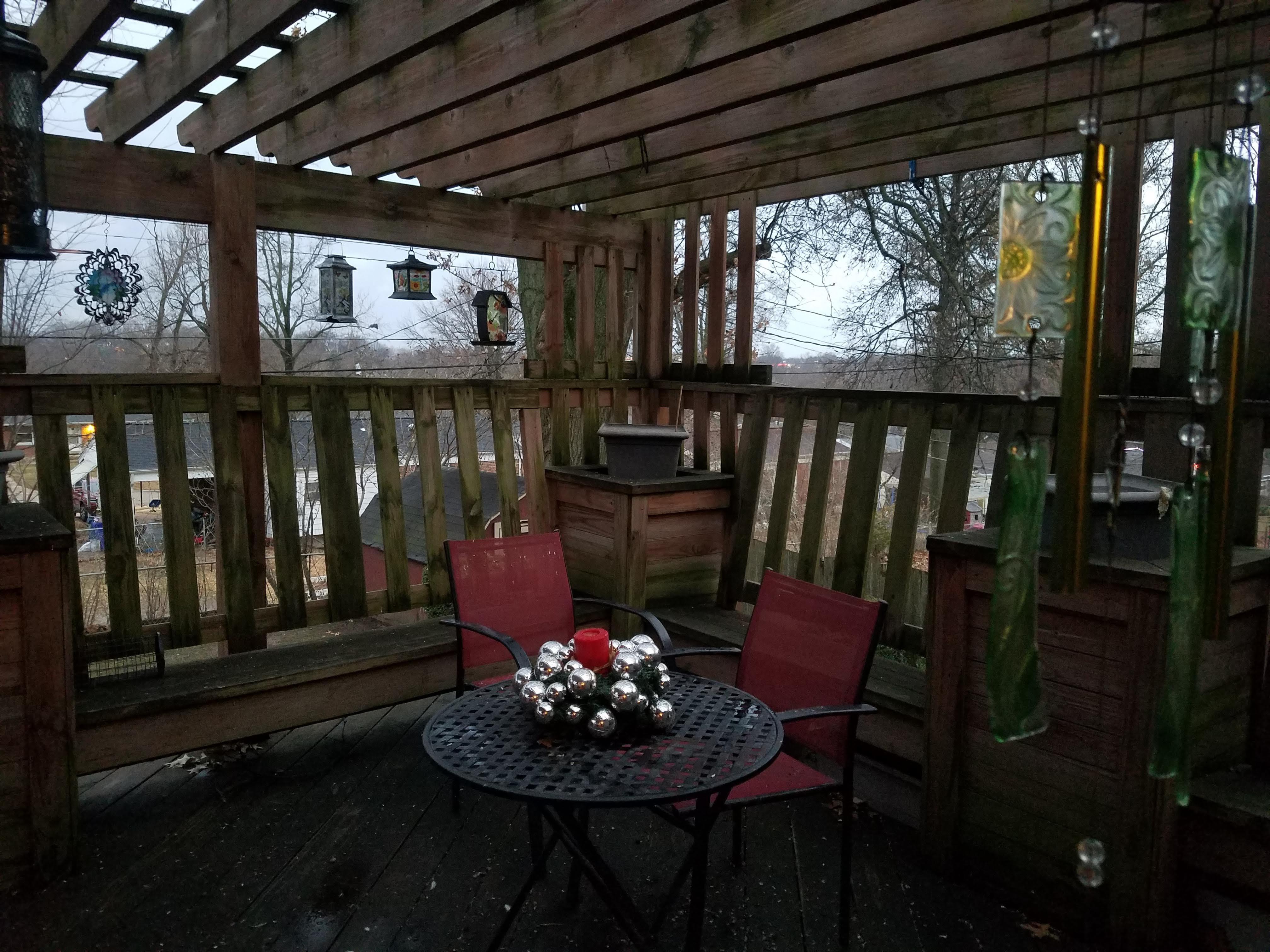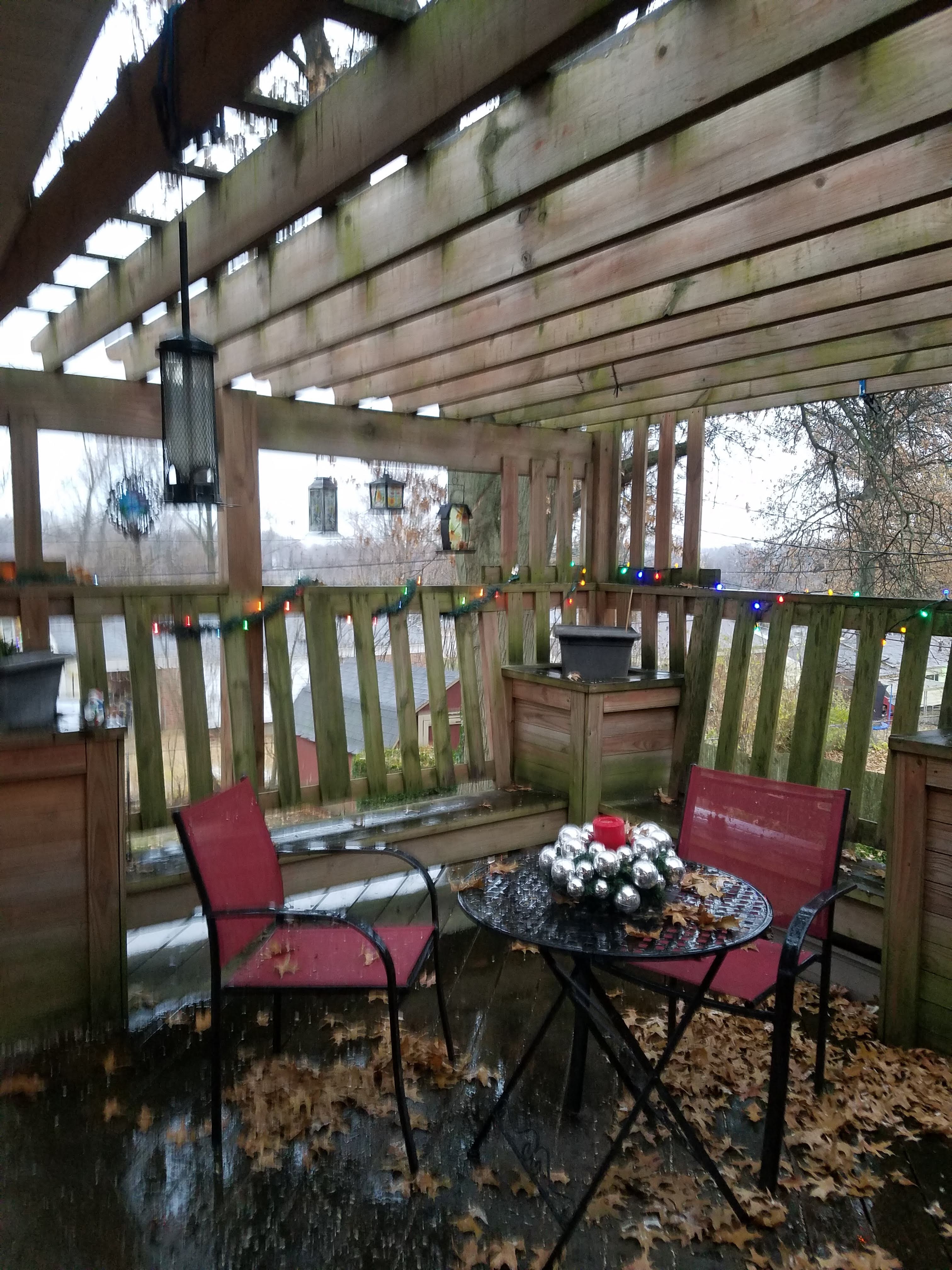 Snow? Maybe… probably not. We got a little yesterday. It came down in huge beautiful flakes for awhile, but then dissolved before it hit the ground. It’s plenty cold enough to have frozen along the branches of the tallest trees. More likely though, it’s just starkly white branches melding with the cold in a wintery mirage.