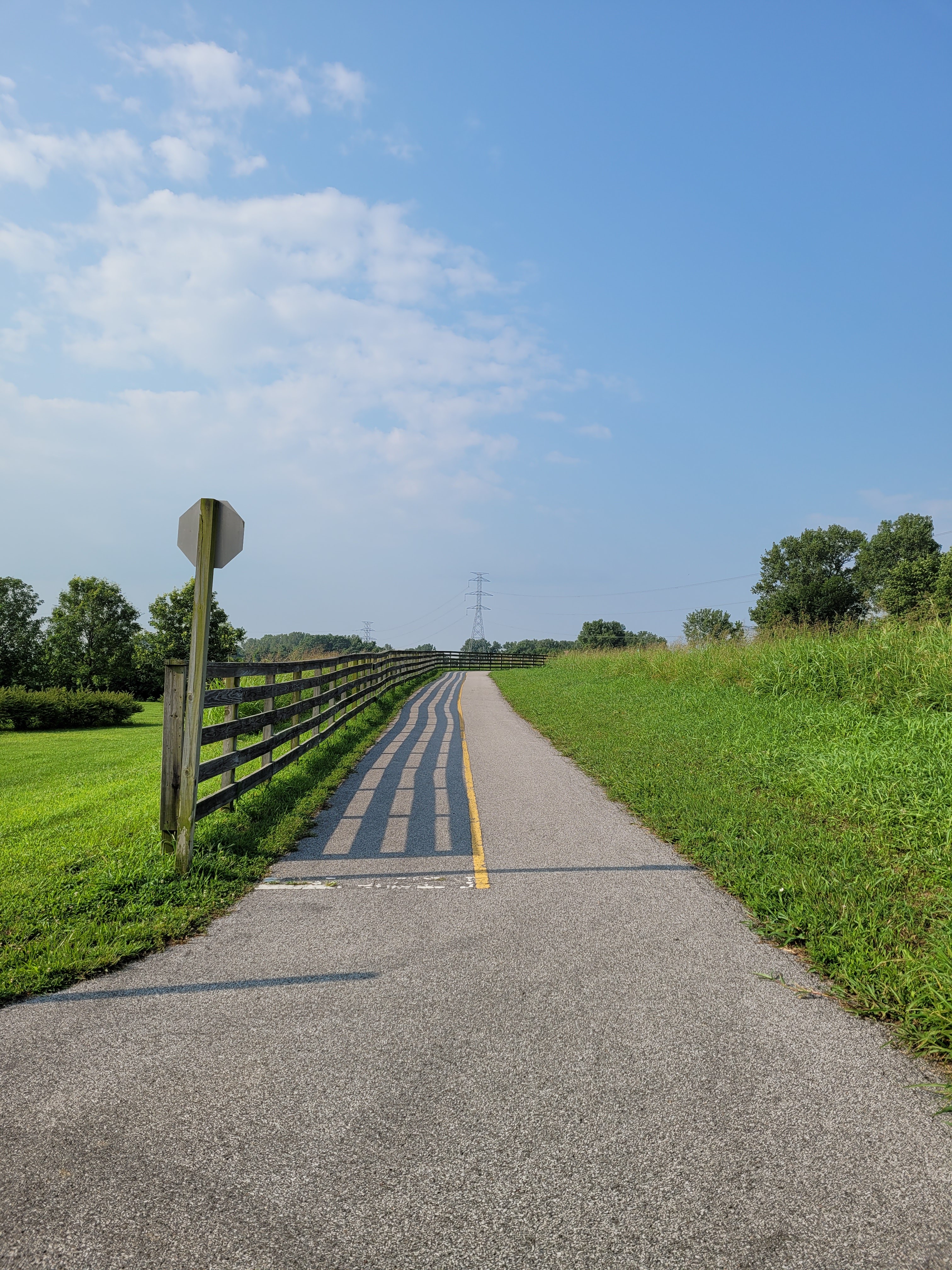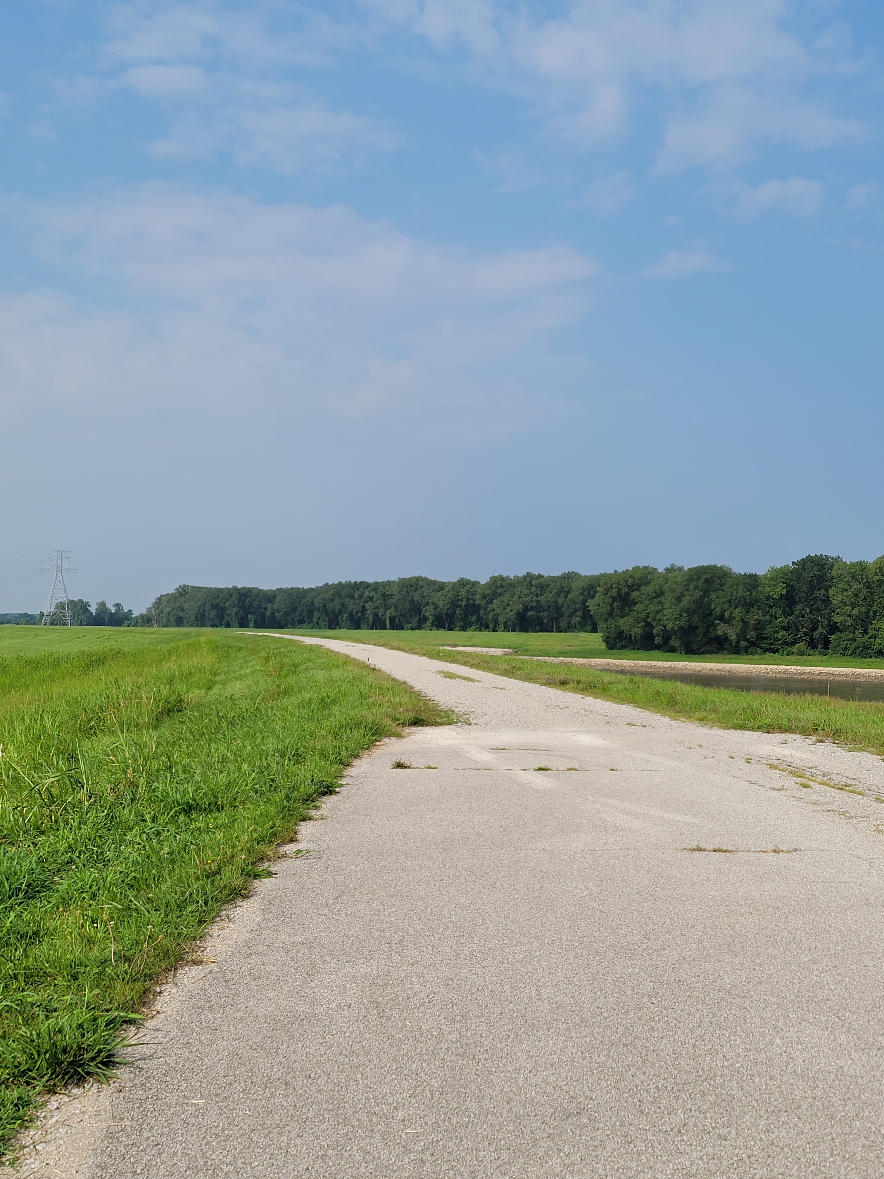 A gravel trail and rapidly deflating rear tire end my ramble today, but I’ll definitely be back to explore the museums and cross the levee trail.