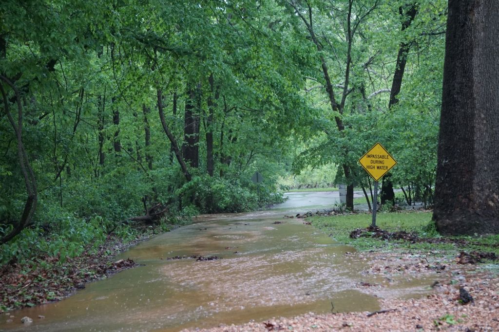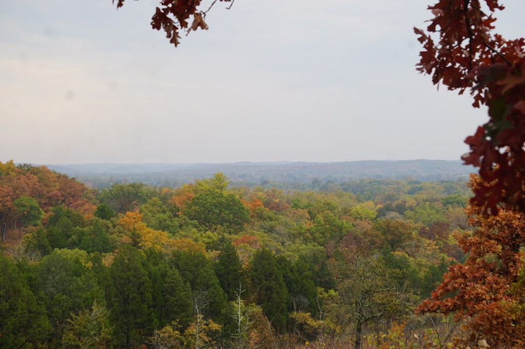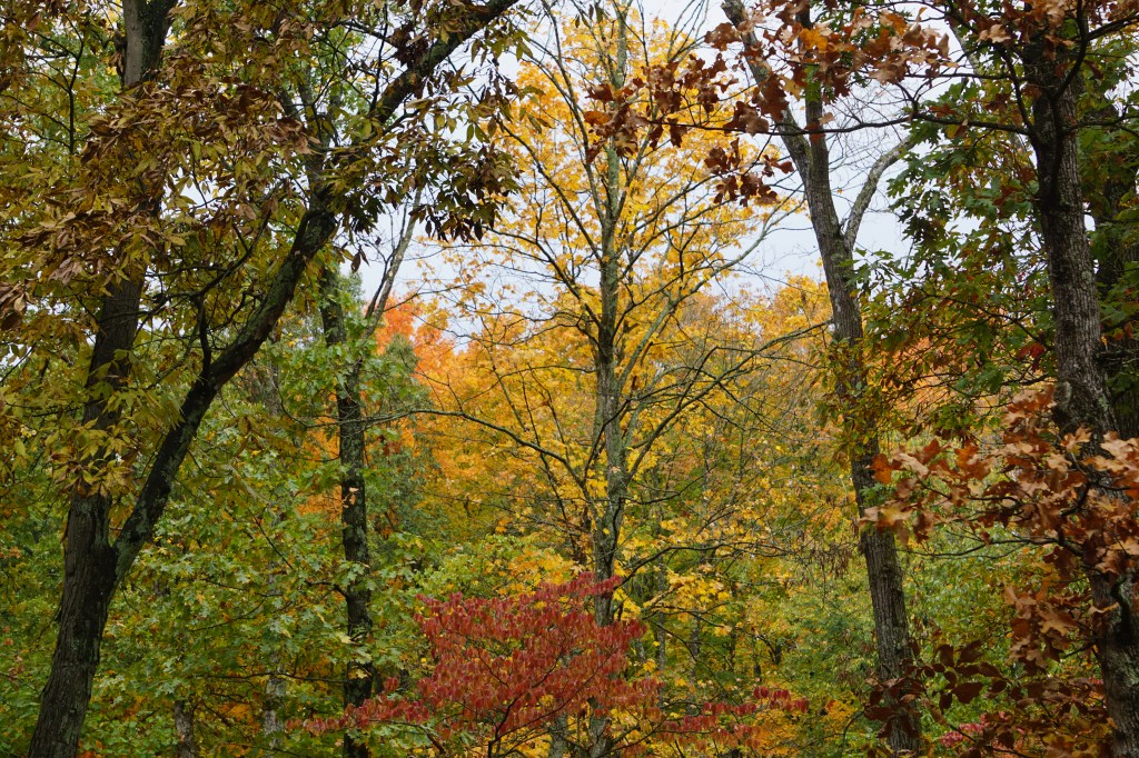 Crossing the road to the River Trail the route climbs uphill to Crescent Knoll Overlook.
