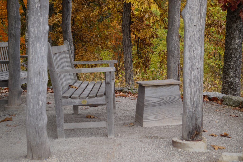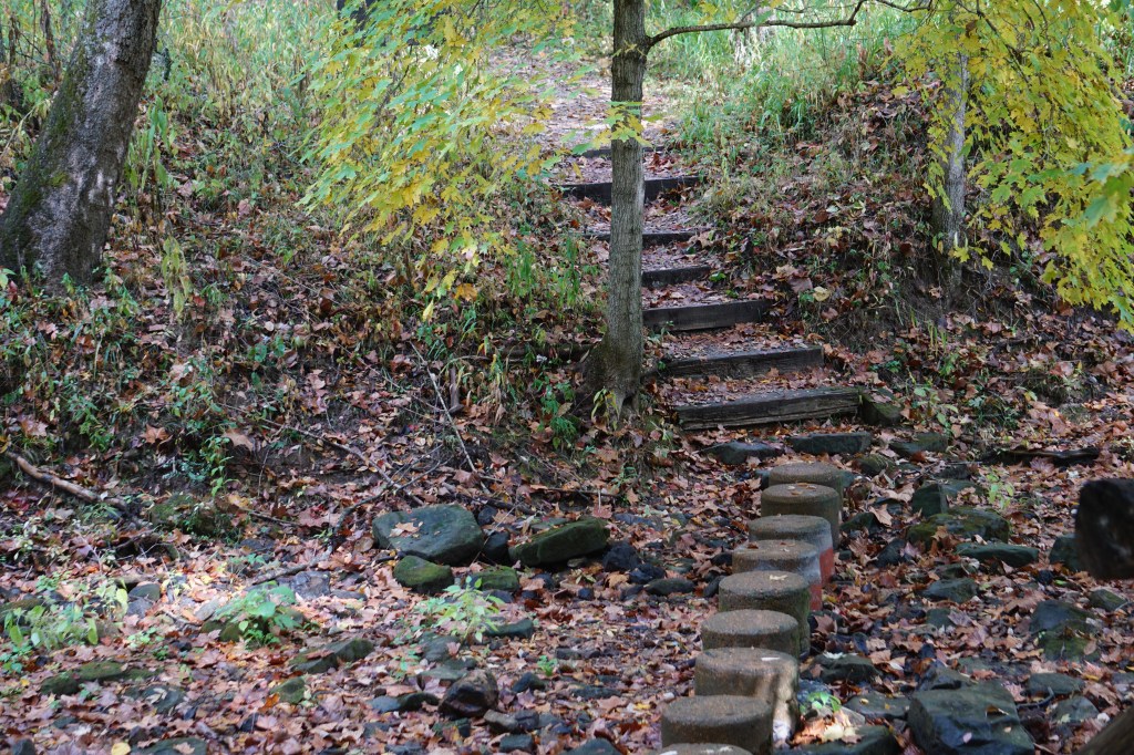 The stepping stones are a little damper now, and poke through piles of leaves.