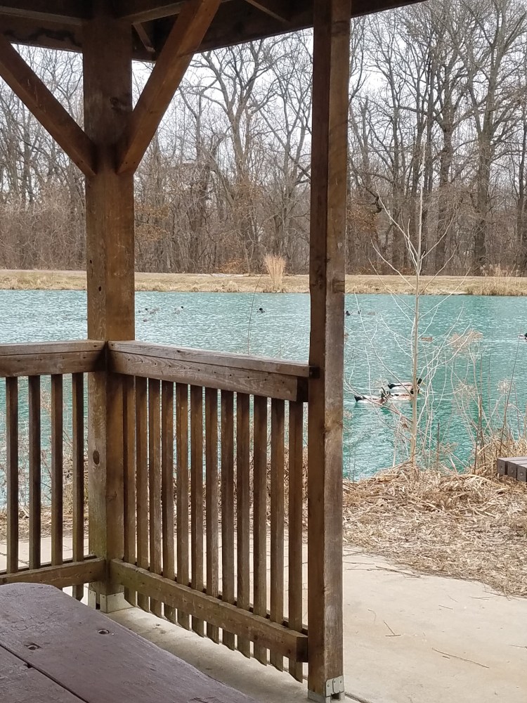 Breakfast on the deck overlooking the river. A little cold for eating outside at first, but sunshine and coffee and thick, cheesy, omelets, quickly chased the chill away.