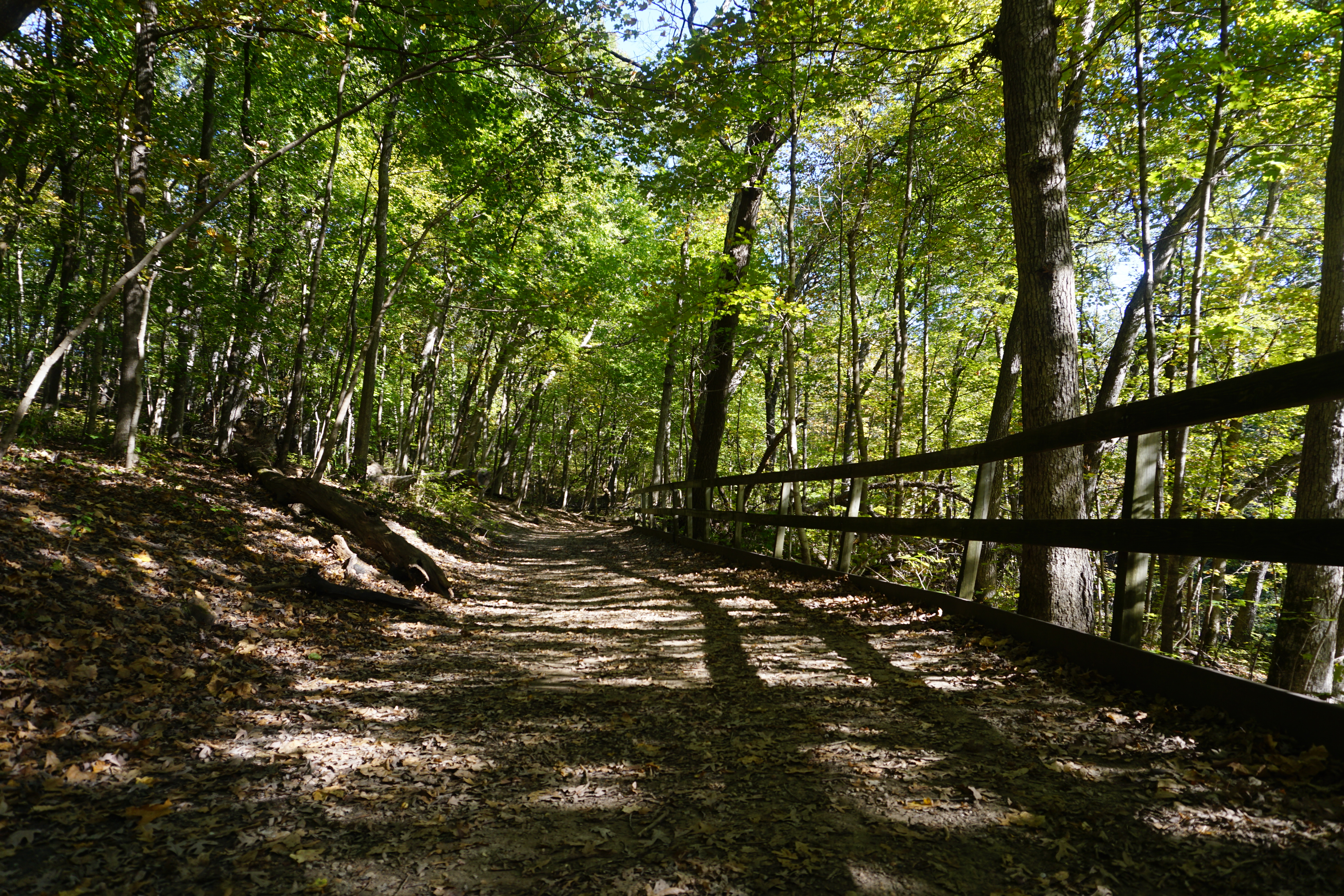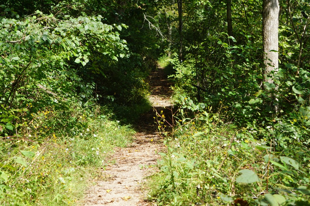 Found it, though! Wooden beams form steps down into the bottoms and the familiar path through the woods. A few of them seem to be newly replaced, and I’m glad it’s being maintained.