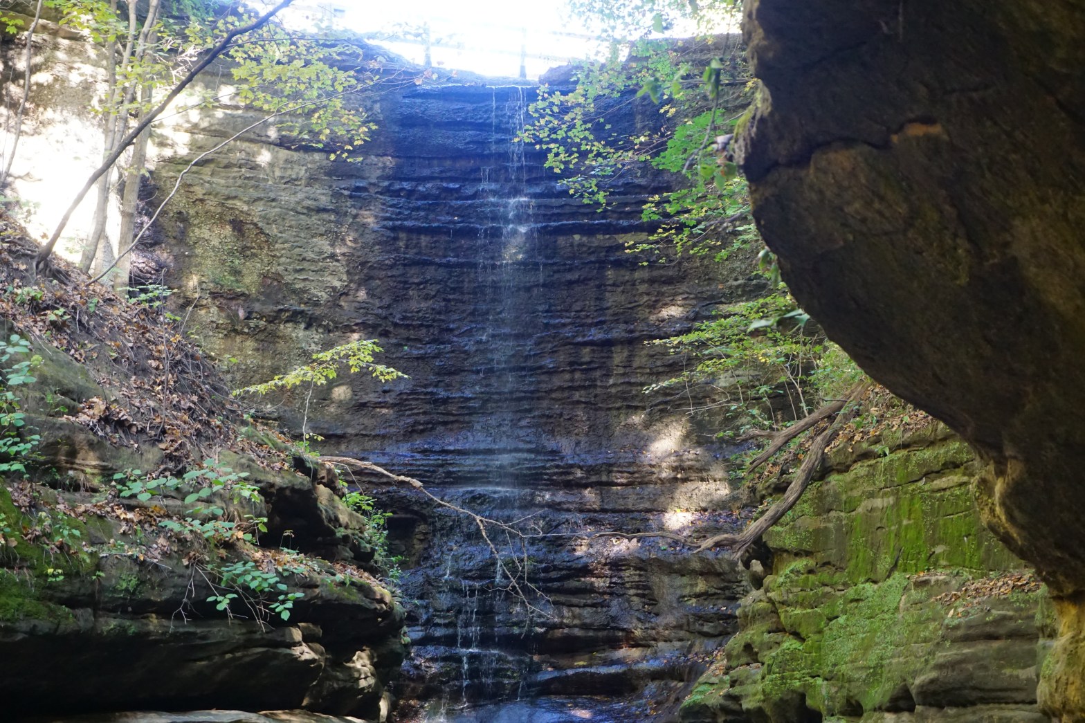 As the trail leads out of the woods, it’s clouding over a bit, but the cliffs are blocking the breeze and it actually feels a bit warmer.